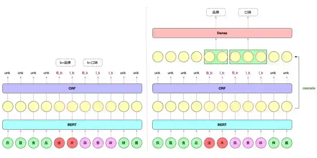 ▲ 左单任务NER模型;右多任务NER模型