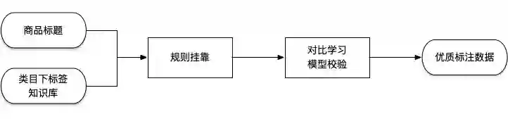 通过规则挂靠出的数据也会存在一些 bad case,尽管做了类目限制,但也有一定的标错样本;组内其他同学在做大规模对比学习模型,于是用规则挂靠出的结果标题——标签:标签值走一遍对比学习模型,把标题向量和标签值向量相似得分高的样本留下当做优质标注数据。