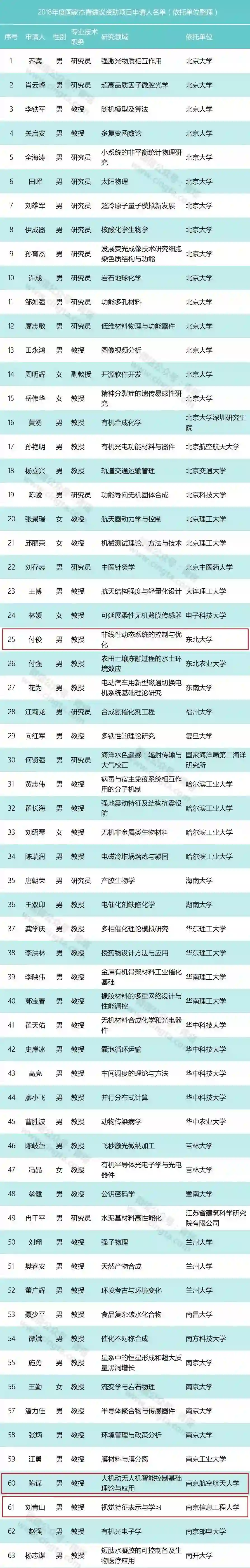 今早(8月3日),科技日报正式公布了国家自然科学基金委员会关于公布2018年度国家杰出青年科学基金建议资助项目申请人名单的通告,2018年国家杰青正式出炉。