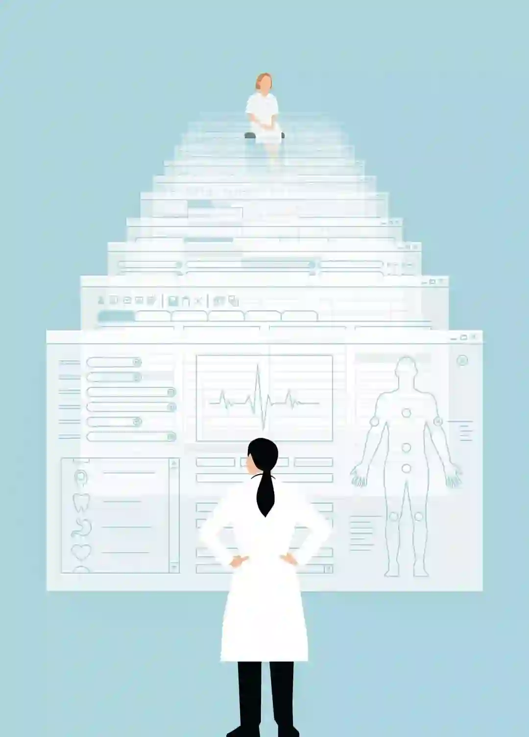 过去十年里,90%以上的美国医院都数字化了。医生通过电脑给病患记录病历、预约化验、查看诊断结果,他们不再需要手写病历,也能再系统上查看需要的信息。这听起来很有用。然而,医生却似乎没喜欢上电脑,甚至被拖入更加倦怠的境地。