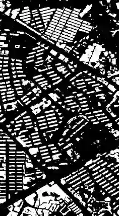 预测单张遥感图像时我们分别使用4个模型做预测,那我们就会得到4张mask(比如下图就是我们用训练好的buildings模型预测的结果),我们现在要将这4张mask合并成1张,那么怎么合并会比较好呢?我思路是,通过观察每一类的预测结果,我们可以从直观上知道哪些类的预测比较准确,那么我们就可以给这些mask图排优先级了,比如:priority:building>water>road>vegetation,那么当遇到一个像素点,4个mask图都说是属于自己类别的标签时,我们就可以根据先前定义好的优先级,把该像素的标签定为优先级最高的标签。代码思路可以参照下面的代码: