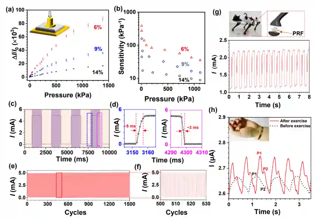 实验室在与清华大学集成电路学院合作的 “Large-Scale Integrated Flexible Tactile Sensor Array for Sensitive Smart Robotic Touch” 论文中,将上述压阻式传感器的各项指标达到了领先水平。该论文已在 ACS Nano 期刊上发表。