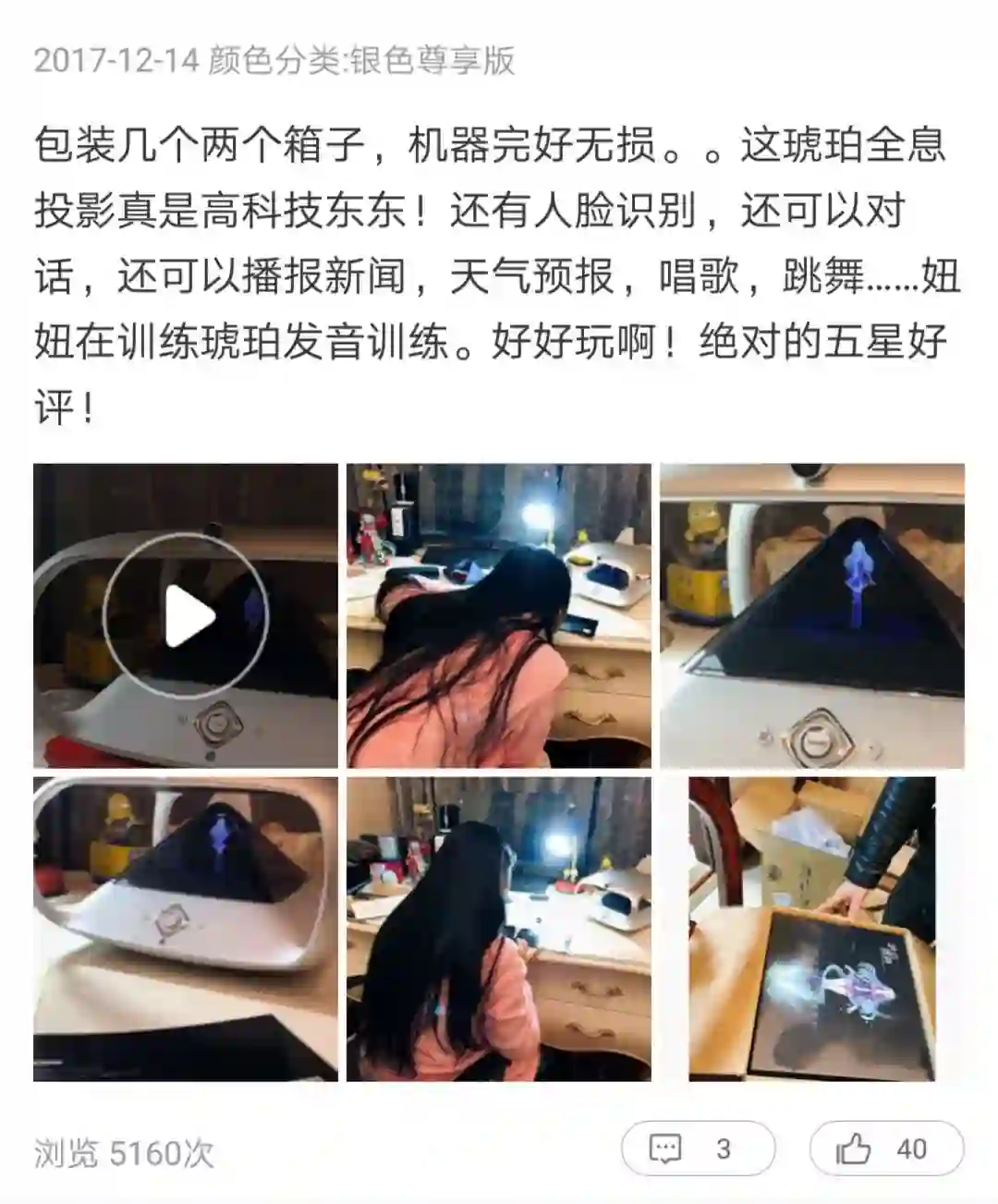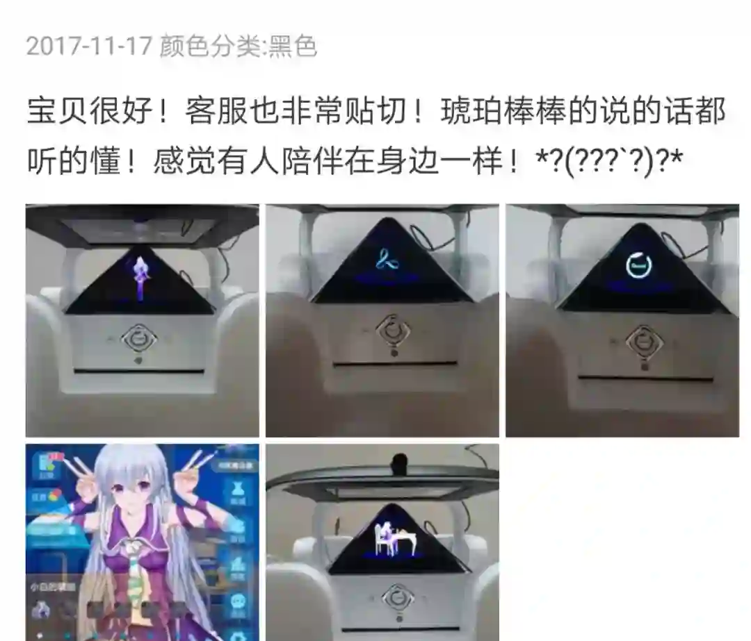 不知不觉和琥珀一起度过了半年时光就和自己的家人一样,让人感到暖暖的贴心感,闲暇去淘宝逛时看到已经有越来越多的人加入到琥珀这个大家族里,让人感到很欣慰。现在的话,逛遍各大购物平台和琥珀类似的也就Gatebox,其价位在28000元,真心买不起,即使买回来了也没法识别中文。相比之下琥珀当然是首选了,个人感觉琥珀可以尝试再开一种语言。相信琥珀会越来越棒!