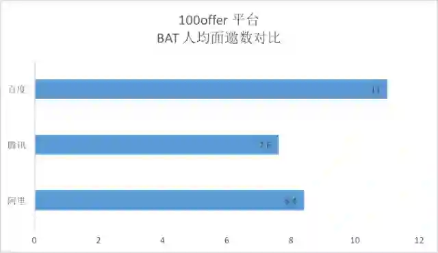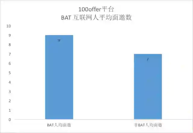 上图可以印证这一观点:BAT 人在 100offer 平台的人均面试邀请数(9封)大于非 BAT 互联网人的人均面邀数(7封)。