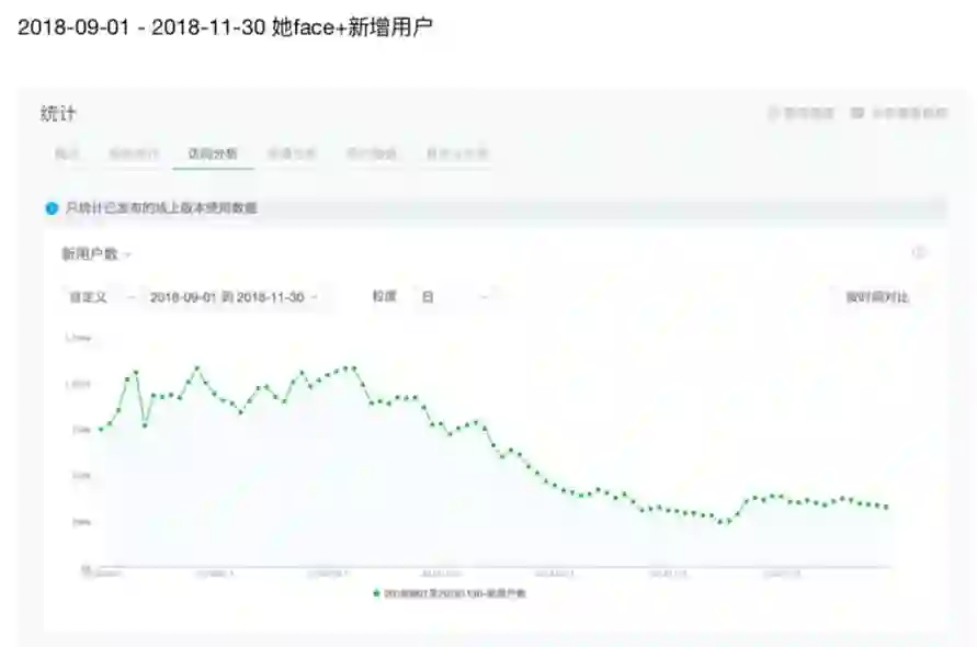 9月1日到11月30日她face+新增用户数和每日用户数变化趋势