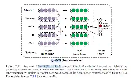 (2)SynGCN模型,该方法是一种灵活的基于图卷积的词嵌入学习方法,该方法利用词对上下文的依赖性而不是线性上下文来学习更加有意义的词嵌入表示。