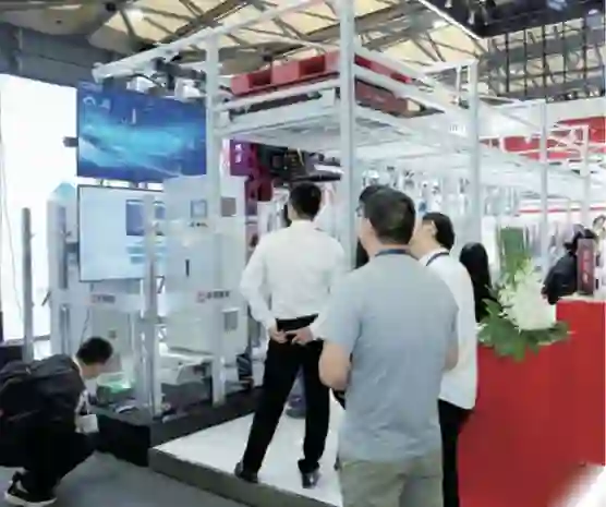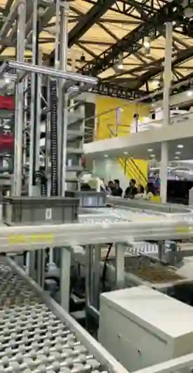 华章展示了最新的拆零拣选技术——“飞梭”五大系列产品及拆零拣选解决方案,包括悬挂分拣系统、货到机器人拣选系统、最新一代轻载穿梭车,以及穿梭车到机器人、机器人到悬挂链的混合分拣技术。