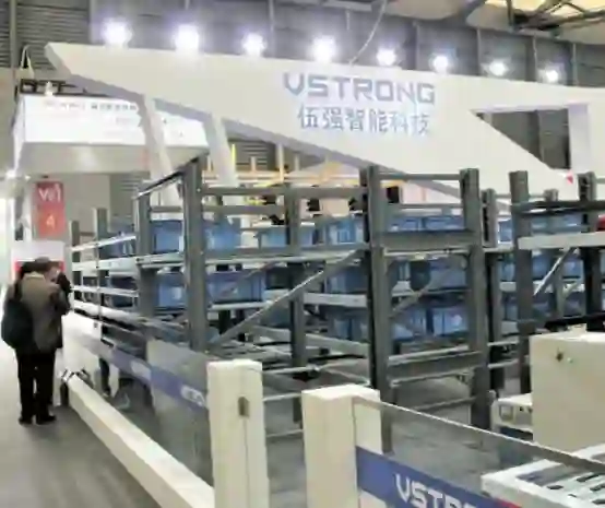伍强智能科技有限公司以崭新形象亮相,其最新研发的红蟹1号高速四向车和基于四向车快速存取技术的“货到人”拣选系统吸引了众多参观者的目光。