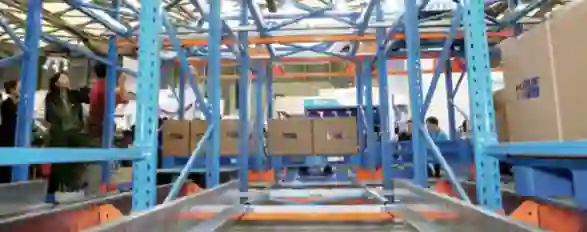 其中,华章最新一代轻载穿梭车通过伸缩式拔叉存取货功能,使穿梭车可以利用多种组合的拔叉来存储周转箱或纸箱,具有大处理量、高利用率、布局灵活、节能降耗等特点。