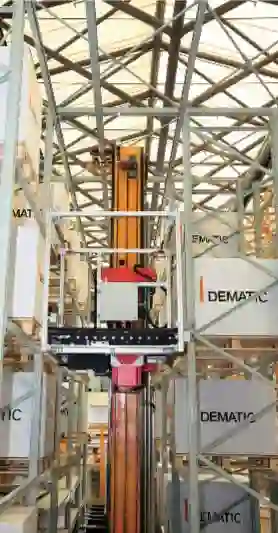 据介绍,这款全新的轻载荷堆垛机主要针对中小型货品的全自动存取,在存储效率、空间优化、成本节约等方面均有显著的优势。其堆垛机走行速度可达360m/min,升降速度可达180m/min,实现更加快速的存储效率;Omega驱动单元集成设计在堆垛机立柱的底部,减少堆垛机前后端的尺寸,最大程度缩短了堆垛机的总长度,通过将堆垛机下横梁嵌入走行轨道内部,减少了堆垛机的底部空间尺寸,从而提供更大的存储空间并充分利用现有空间;采用通用零件设计原则,从而降低设备的运行成本,选装的超级电容可以回收刹车能量,降低能耗25%以上,实现最高的能源效率。