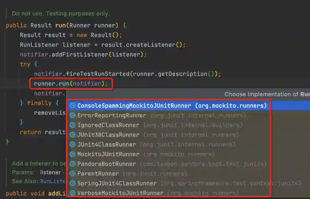 如果上面都不满足,则返回BlockJUnit4ClassRunner,其表示的是一个标准的JUnit4测试模型