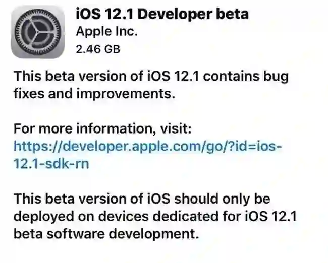 昨天苹果刚推送了iOS12正式版更新。今天凌晨,苹果就推送了iOS 12.1 开发者测试版beta1 更新。