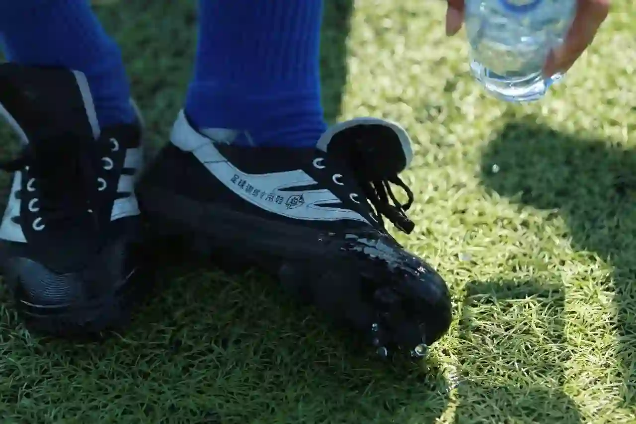 女足队员在训练间隙给训练鞋淋水降温。据肖山介绍,由于训练场是人工草坪(即塑料草)与训练鞋摩擦后训练鞋发烫。图 | 视觉中国