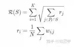 R(S)设计的核心思想在于:当从一个从未没被抽取摘要句的聚簇P中选取一个句子,其奖励通常会比较大,但是后续从该分区再次选择句子时,得到的奖励将会逐渐衰减。具体来说,加入P1中已经有个句子k1被放到了S中,下轮选择时,计算R(S)值,会将k1的r值在根号计算中衰减掉,使得P1整体的值被衰减。