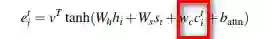 1、在计算encoder的attention时,在原始的计算公式中,增加了历史时刻的attention history信息,如图红色框中的内容: 表示的是历史attention信息的累积。