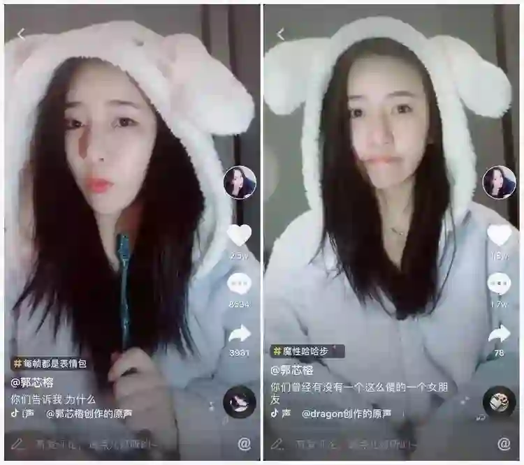 其中一个视频获得了上千万的播放量,一天涨了10万粉丝。一些护肤品品牌找到她投放抖音广告,她还发现,在抖音小有名气之后,自己在微博上的粉丝从2万涨到了7万。