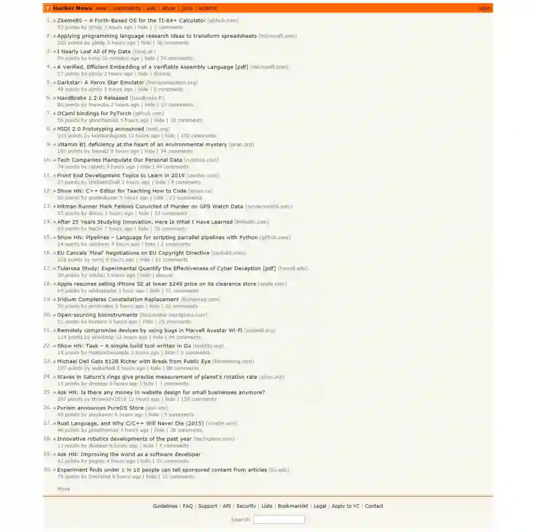 先上一张 Hacker News 最新的首页截图,感受一下万年不改的上世纪风格 UI ↓↓↓