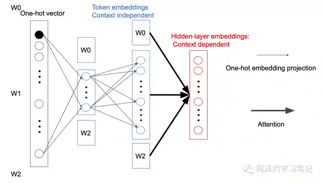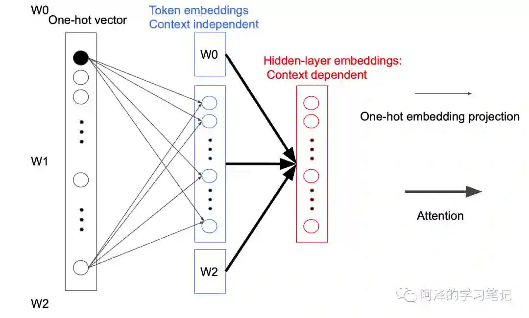 之所以可以这样做是因为每次反向传播时都只会更新一个 Token 相关参数,其他参数都不会变。而且在第一次投影的过程中,词与词之间是不会进行交互的,只有在后面的 Attention 过程中才会做交互,我们称为 Sparsely updated。如果词不做交互的话,完全没有必要用一个很高维度的向量去表示,所以就引入一个小的隐藏层。(这个过程是不是很像矩阵分解)
