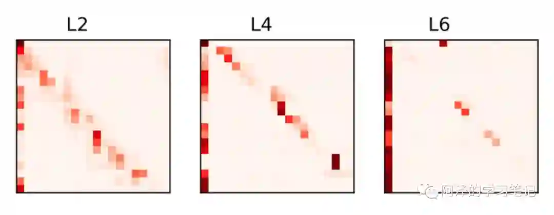 ALBERT 之所以这样做是因为,考虑到每次层其实学习到内容非常相似,所以尝试了将其进行参数共享。下图为不同层 Attention 学到的东西: