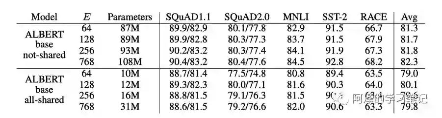 ALBERT 提出了两种降低参数的技术,包括 factorized embedding parameterization 和 cross-layer parameter sharing。前者是将 Embedding 参数矩阵分解为两个小矩阵,后者是跨层的参数共享。