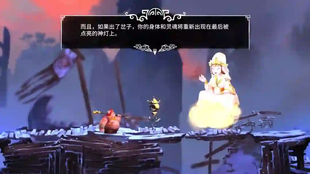 由于主创团队大部分来自育碧,你在 Unruly Heroes 上可以看到不少雷曼的影子,比如熟悉的横版关卡设计、简洁明快的动作招式以及油画般的艺术风格。结合我们熟知的三打白骨精、火焰山、牛魔王等故事,文化趣味两开花。