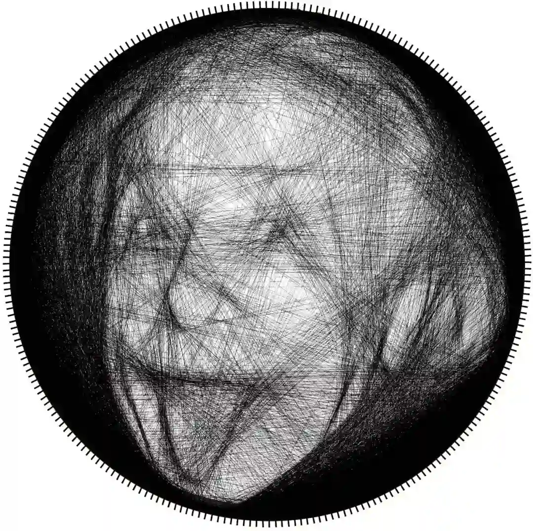 其实这样的作画方式被称为String Art ,是一种用于创建视觉艺术作品的技术,如上图所示,创作出来的图像将在一系列“线”的交叠中出现。