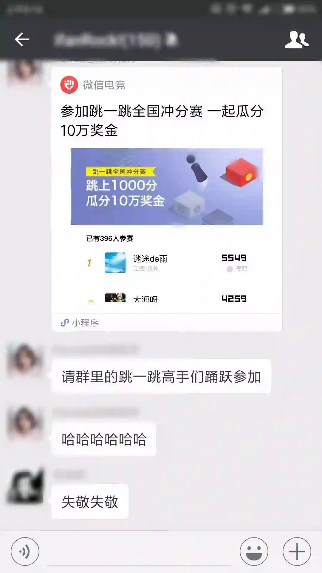 转正了的实习小哥一直在和我暗暗较劲,每到周一凌晨排行榜刷新后,就对我穷追不舍。我被他这种竞技精神所打动,分享了一个叫「微信电竞」的小程序给他: