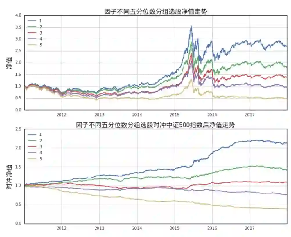 然后他重点介绍了SKlearn在因子合成方面的应用,分为数据准备、模型因子合成和因子测试几个步骤,下图为因子的净值走势: