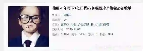 20年写下1一亿行代码的阿里云神级程序猿为你推荐的歌单>>(https://bbs.aliyun.com/read/288999.html)
