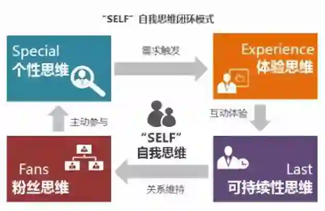 社会在急剧变化,新事物不断涌现,消费者心理稳定性逐渐降低。如今消费者越来越重视体验,渴望彰显个性。消费者的思维模式也开始转变,逐渐形成了从需求触发、需求满足、消费实现到可持续的价值认同的“自我(SELF)”消费思维闭环。“自我(SELF)”理念主要包括个性思维(Specific)、体验思维(Experience)、持续思维(Last)和粉丝思维(Fans)。
