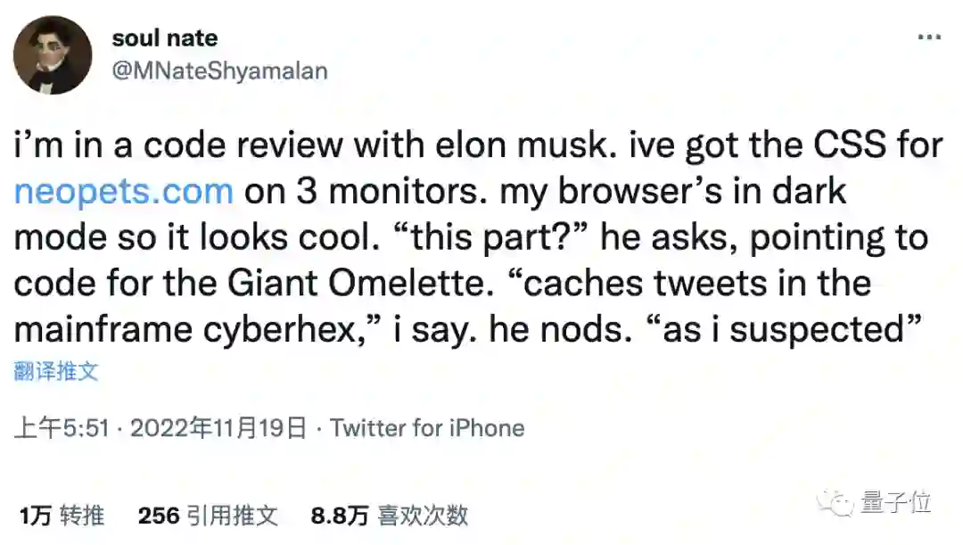最火的一类段子通常以“我是一名前推特工程师”或者“一次马斯克对我做代码审查”为开头。
