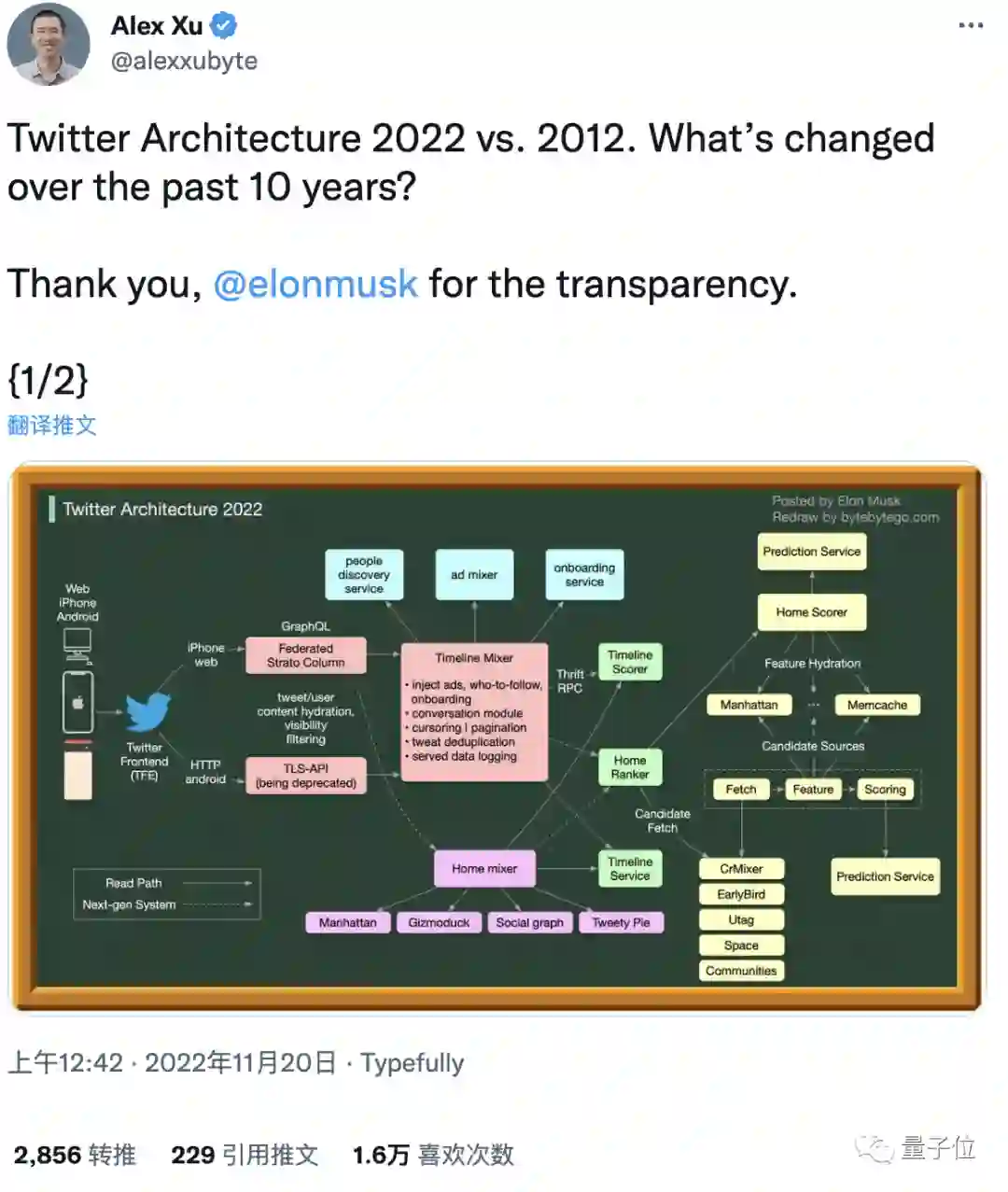 还有真正的架构师抓住这个机会,比较2022年的推特架构与2012年相比有哪些不同?