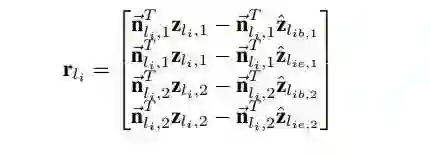 对于线特征,使用线段检测器(LSD)来提取线段。对于检测到的每个线段,使用线带描述符(LBD)提取二进制描述符。为了确保最佳匹配,我们执行4路一致性检查,即从左到右,从右到左,过去到现在,以及现在到过去。此外还通过检查线的长度和方向来修剪假定的匹配。