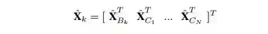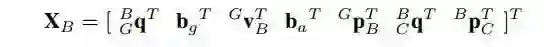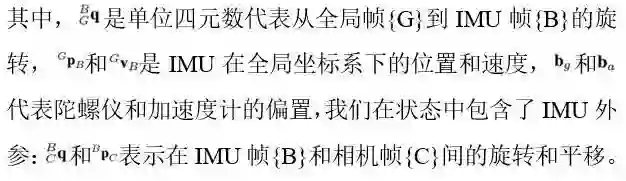k时刻,我们估计器的完整状态包括当前IMU状态估计和N个相机位姿: