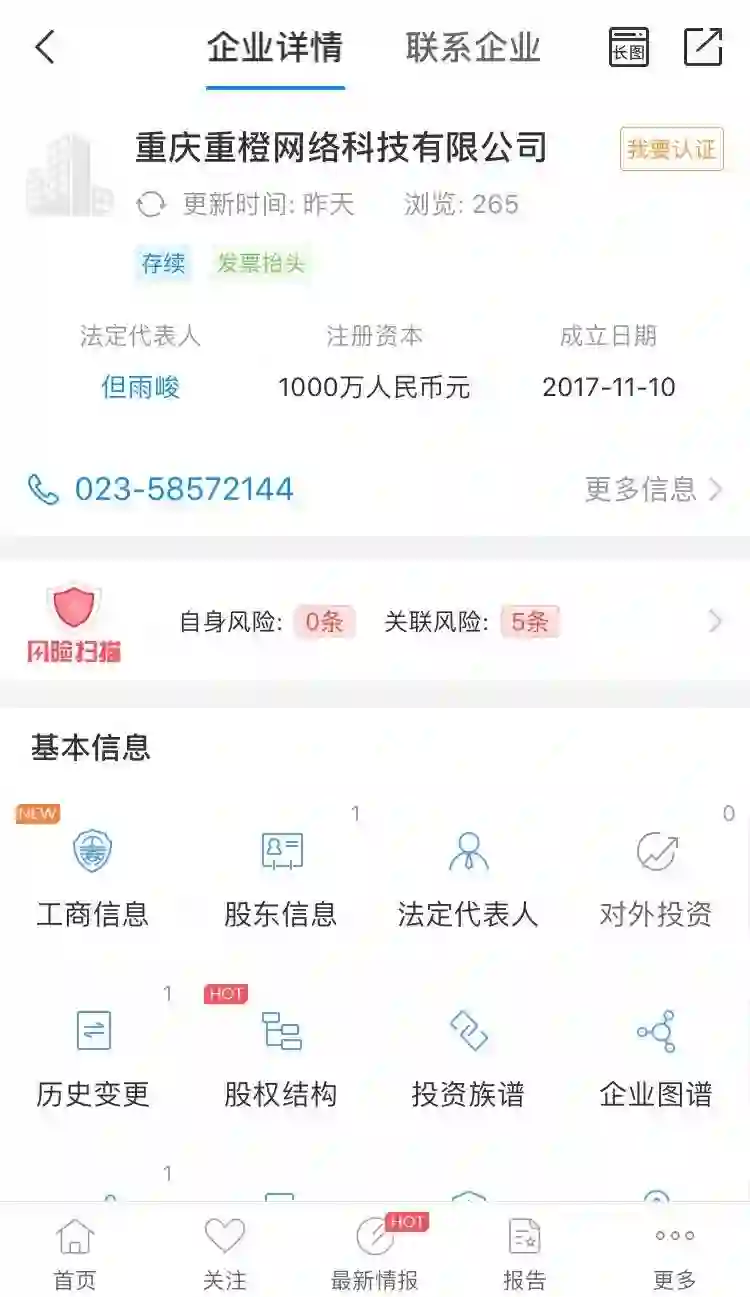 根据企查查的信息显示,这是一家成立于2017年11月10日的公司,注册资本为1000万人民币,法定代表人为但雨峻。