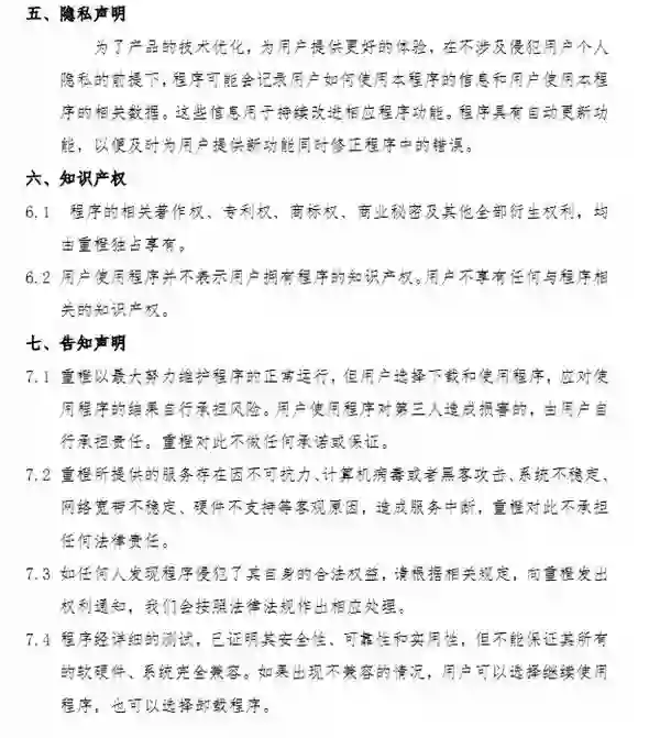 不仅如此,协议中还写道:“重橙可能会和第三方合作向用户提供相关网络服务或者数据收集工具用以完善自身服务,在此情况下,如该第三方愿意承担隐私保护责任的,则重橙可在合理范围内对用户信息进行披露。”