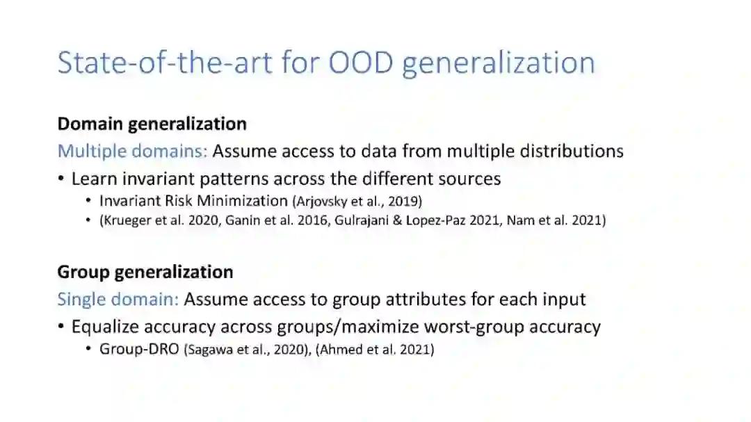 随着数据分布从训练集偏移,最先进的机器学习模型无法泛化,即使是在很小的偏移下,如旋转(图像)或改变语义等效的单词(文本)。这些失败通常是因为模型倾向于从出现新数据的训练数据中学习虚假的相关性。虽然已经提出了许多基于正则化或数据增强的解决方案,但最近的实证研究表明,它们没有一个在数据集上可靠地工作。原因是这些方法没有考虑底层数据生成过程的因果结构,该结构控制着分布如何发生。我将提出一个用于构建可泛化ML模型的新框架,该框架将已知的因果知识直接注入神经网络的训练中。它是通过使用因果图描述不同类型的分布偏移并自动推断要应用的正确正则化来实现的。