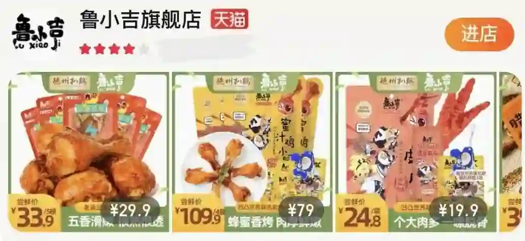 2019年8月,德州扒鸡推出子品牌“鲁小吉”,主打休闲即食卤味,其中包括扒小鸡、蜜汁鸡腿、虎皮凤爪等。第二年,鲁小吉系列产品销售额为2000万元,占当年度公司总销售额的3%。