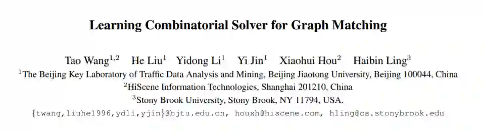 基于学习的图匹配方法已经发展和探索了十多年,最近在范围和受欢迎程度方面迅速增长。然而,以往的基于学习的算法,无论有没有深度学习策略,都主要关注节点和/或边缘亲和力生成的学习,而对组合求解器的学习关注较少。在这篇论文中,我们提出了一个完全可训练的图匹配框架,在这个框架中,亲和的学习和组合优化的求解不像以前的许多技术那样被明确地分开。首先将两个输入图之间的节点对应问题转化为从一个构造的赋值图中选择可靠节点的问题。然后,利用图网络块模块对图进行计算,形成每个节点的结构化表示。最后对每个节点预测一个用于节点分类的标签,并在正则化的排列差异和一对一匹配约束下进行训练。该方法在四个公共基准上进行了评估,并与最先进的算法进行了比较,实验结果表明了该方法的良好性能。