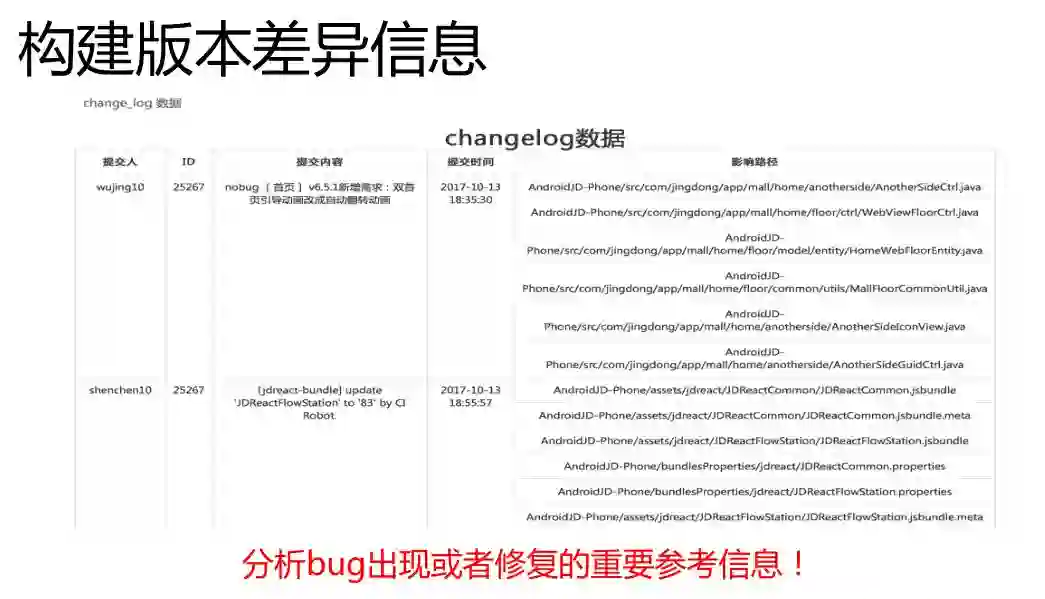 这是构建版本的差异信息,我认为这是非常重要。某一个构建或者每一次构建当中,引入一个新的BUG,就可以通过这个信息追溯,这个BUG是什么原因导致的。上一次在拿到这个包的时候没有出现这个BUG,这次拿到这个包出BUG了。