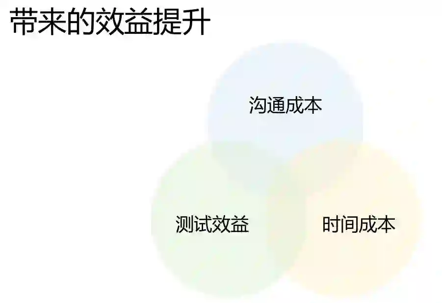 测试效益。我们引入单元测试和自动化测试概念,通过每日持续的构建,持续的测试,就可以帮助我们节省大量人力测试的投入,单元测试可以帮助我们非常快,同时非常高效的去发现代码当中的问题。