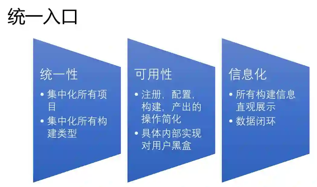 关于统一平台,我们说我们需要怎样的平台。刚刚提到这么多Jenkins服务,我们是不是需要一个统一的平台,把所有项目统一起来。让用户能够直观的以黑盒的方式去使用。