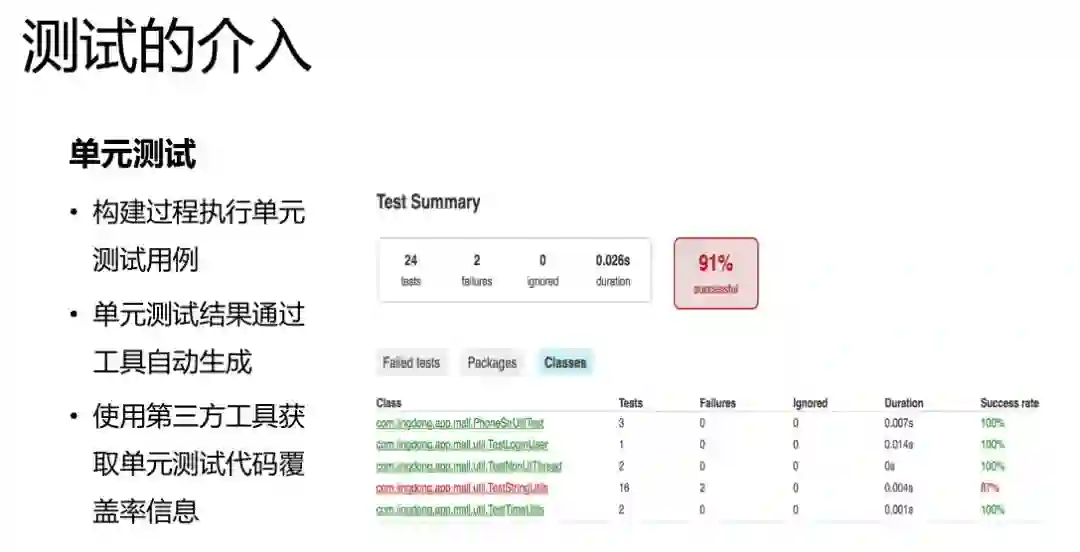 单元测试,我们这边在构建的时候同时完成单元测试的构建。可以通过覆盖率的工具完成这块的单元测试覆盖率报告的数据。