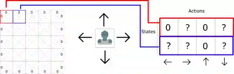 在我们探索环境之前,Q 表中的值是固定的初始值(一般为0)。在我们探索环境时,通过使用Bellman方程迭代更新Q(s,a),Q 表中的值将趋近于更好(见下文!)。