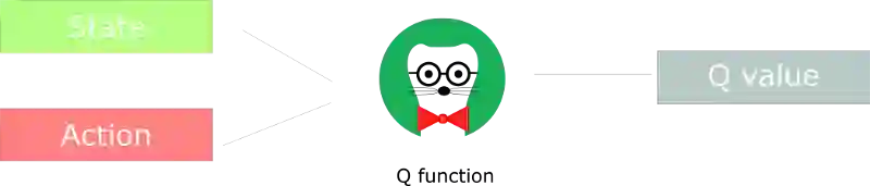 我们可以把这个 Q 函数作为一个阅读指南,通过滚动 Q 表找到与我们的状态相关的行,以及与我们的动作相关联的列。它返回匹配的 Q 值。这个值就是“预期的未来奖励”。