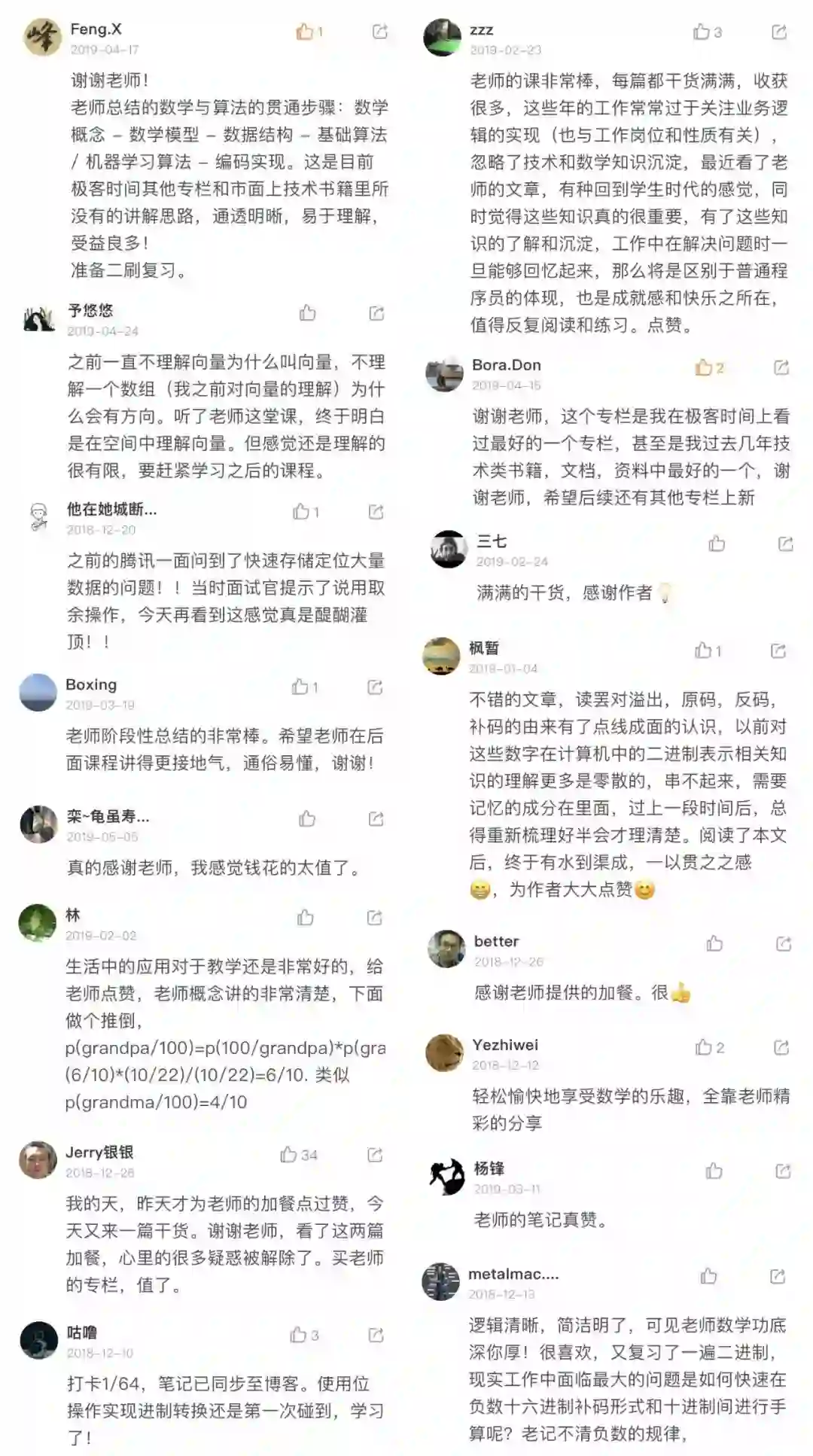 市面上的数学资料我看了不少,不是太难就是太抽象,能深入浅出的确实不多,《程序员的数学基础课》就是其中一个。跟着学下来,让我把算法和数学模型都串联起来,还理清了之前的一些盲点,有时间一定二三刷。
