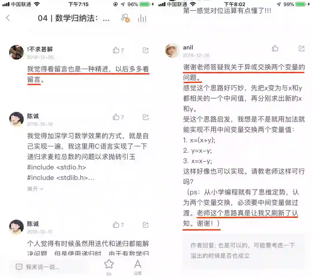 第三,每篇文章老师都会留个难度适中的思考题,并在评论区跟大家耐心互动,解答大家提出的问题。