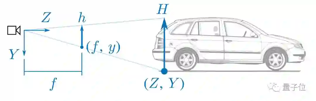 从上面公式可知,我们需要知道实际世界中的车宽(或车高),然后通过物体在图像中的像素高度即可换算出来实际物体的距离。直观上来理解,物体应该是近大远小的。