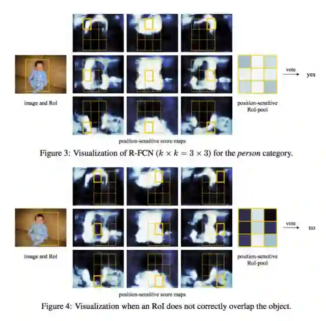 简单地说,R-FCN考虑到每个区域的建议,将其划分为子区域,并在子区域内进行迭代,问:“这样看起来像婴儿的左上角吗?”,“这样看起来像婴儿的正上方吗?”“这样看起来像一个婴儿的右上角吗?”等等。它重复了所有可能的类。如果有足够多的子区域说“是的,我和宝宝的那一部分匹配”,那么在对所有类进行softmax之后,RoI被归类为一个宝宝。
