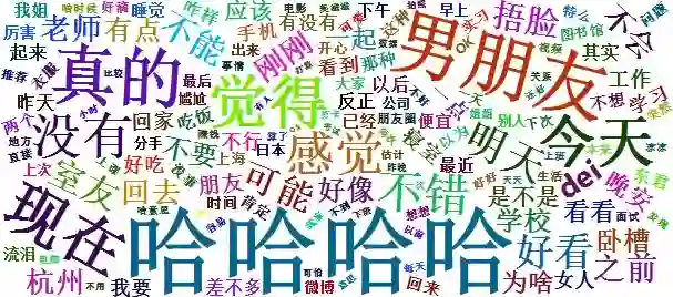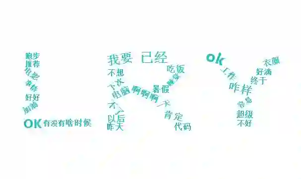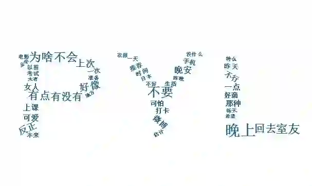 最后,欣赏一下我们的个人词云(为了美观,删去了特别高频的“哈哈哈”“哈哈哈哈”“男朋友”等关键字啦)。
